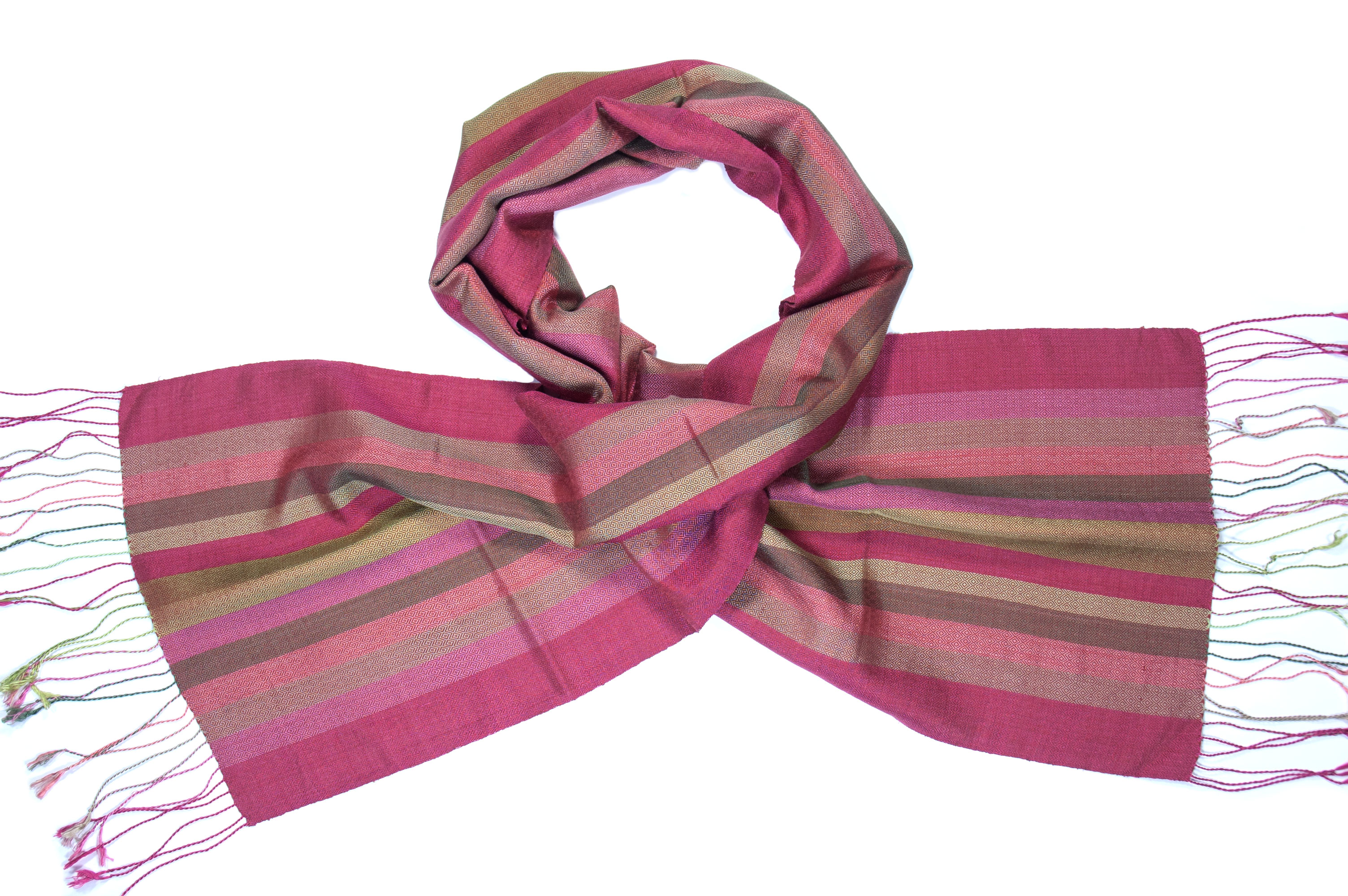 Colourful fair trade scarf made of high quality Cambodian silk. Handwoven beauty created by women artisans from the Takeo province. The proceeds benefit the Future Light Orphanage in Phnom Penh.